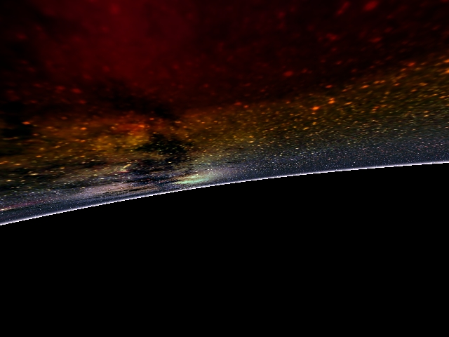Más allá del horizonte de sucesos, la fuerza gravitatoria es muchísimo más intensa y nuestra imagen del cielo cambiaría. La luz parecería más azulada en el “horizonte” que por encima de él, donde tendría una tonalidad más rojiza. De nuevo, la gravedad sería la responsable de este fenómeno, ya que en los lugares más cercanos a la singularidad (debajo nuestra) la longitud de onda de la luz estaría siendo reducida, volviéndola más azulada.